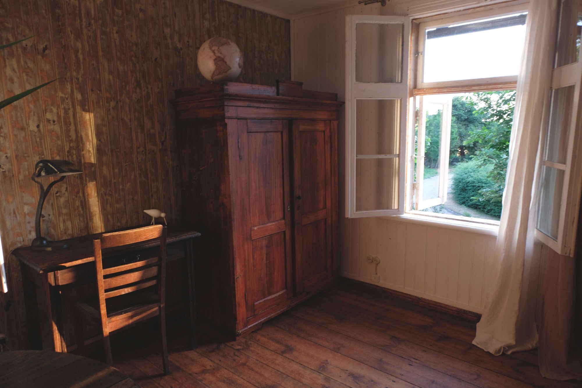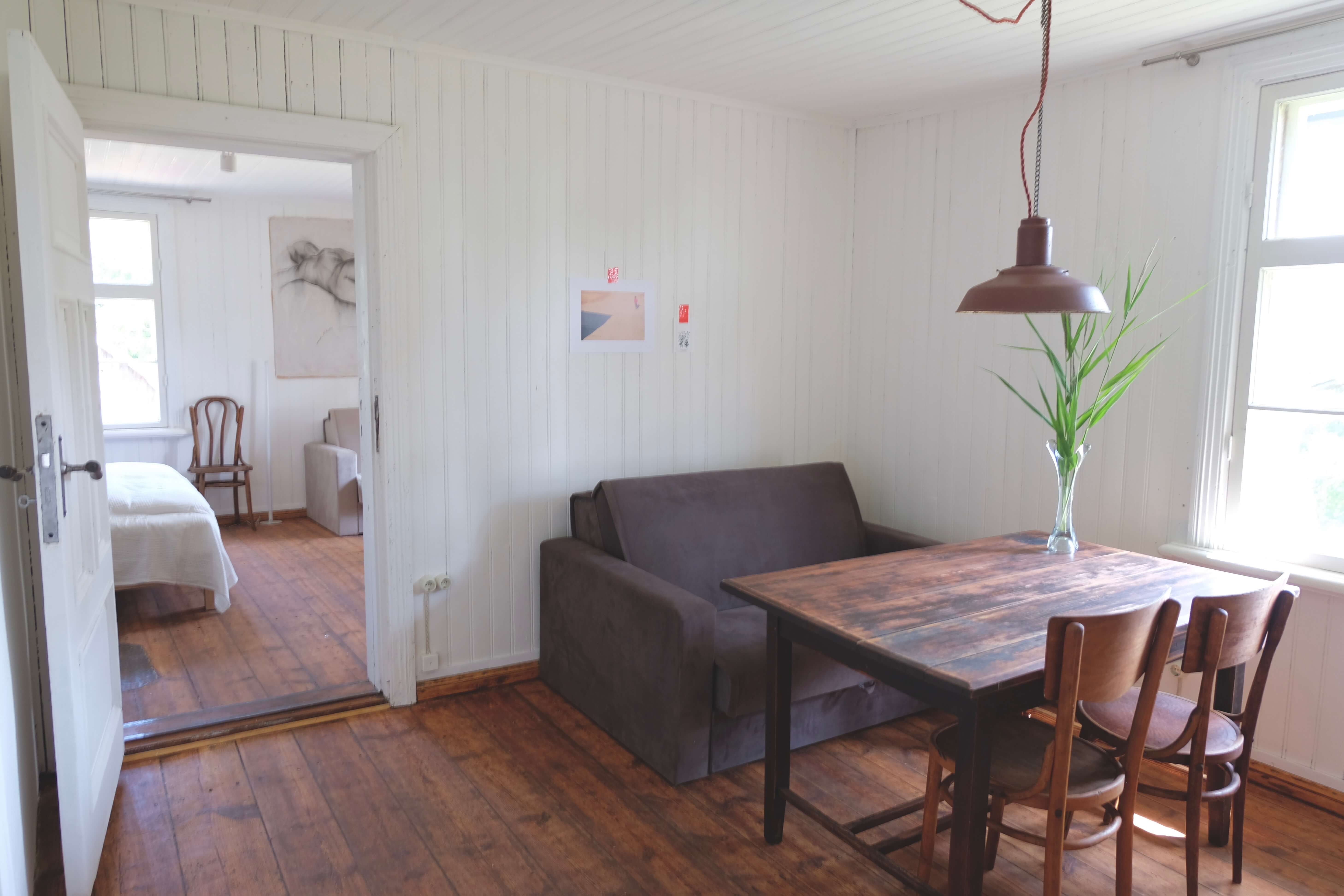 Aizvadītā gadsimta sākuma rakstāmgalds un lampa aicina apsēsties un rakstīt - grāmatu, dzejoli vai vēstuli. Savukārt, skapī var atrast vecvectēva Eduarda parakstu. Rakstniekā ir plaša guļam-dzīvojamā istaba, maza, bet aprīkota virtuvīte un gaiša vannas istaba ar logu.