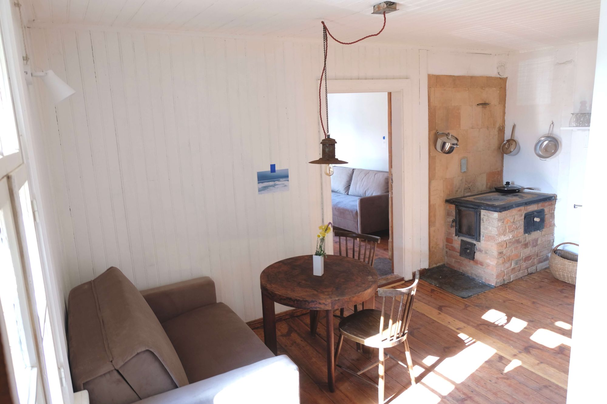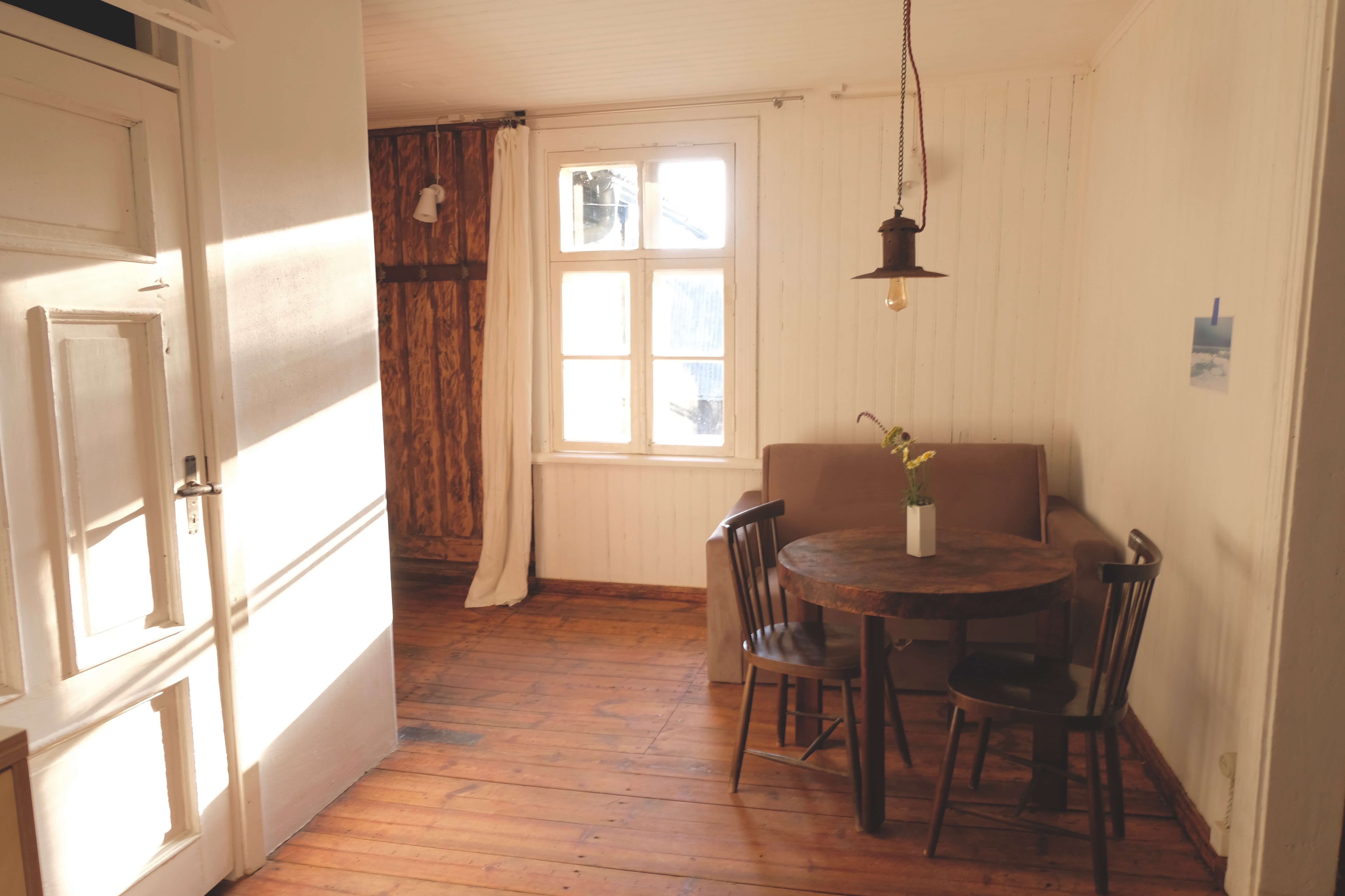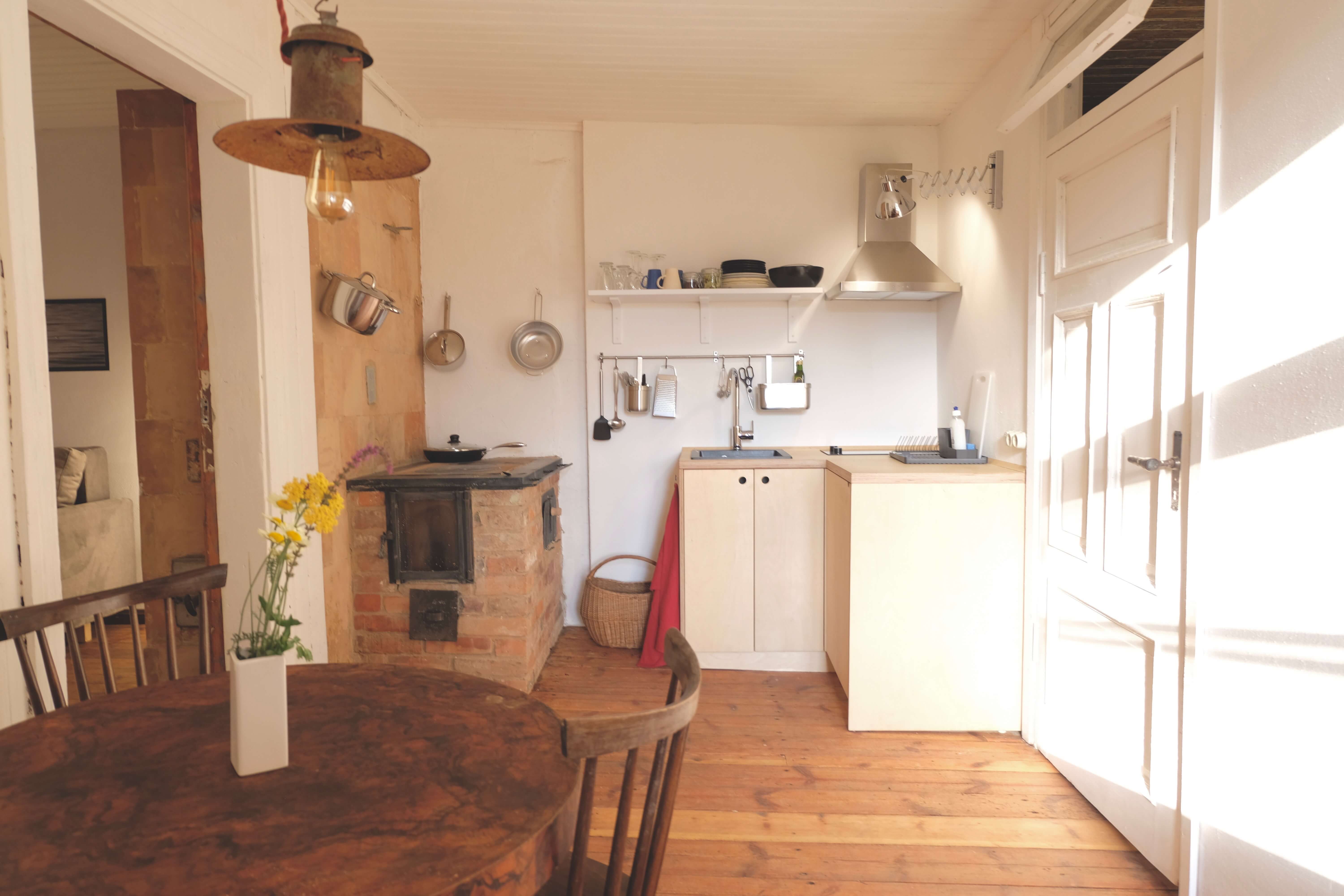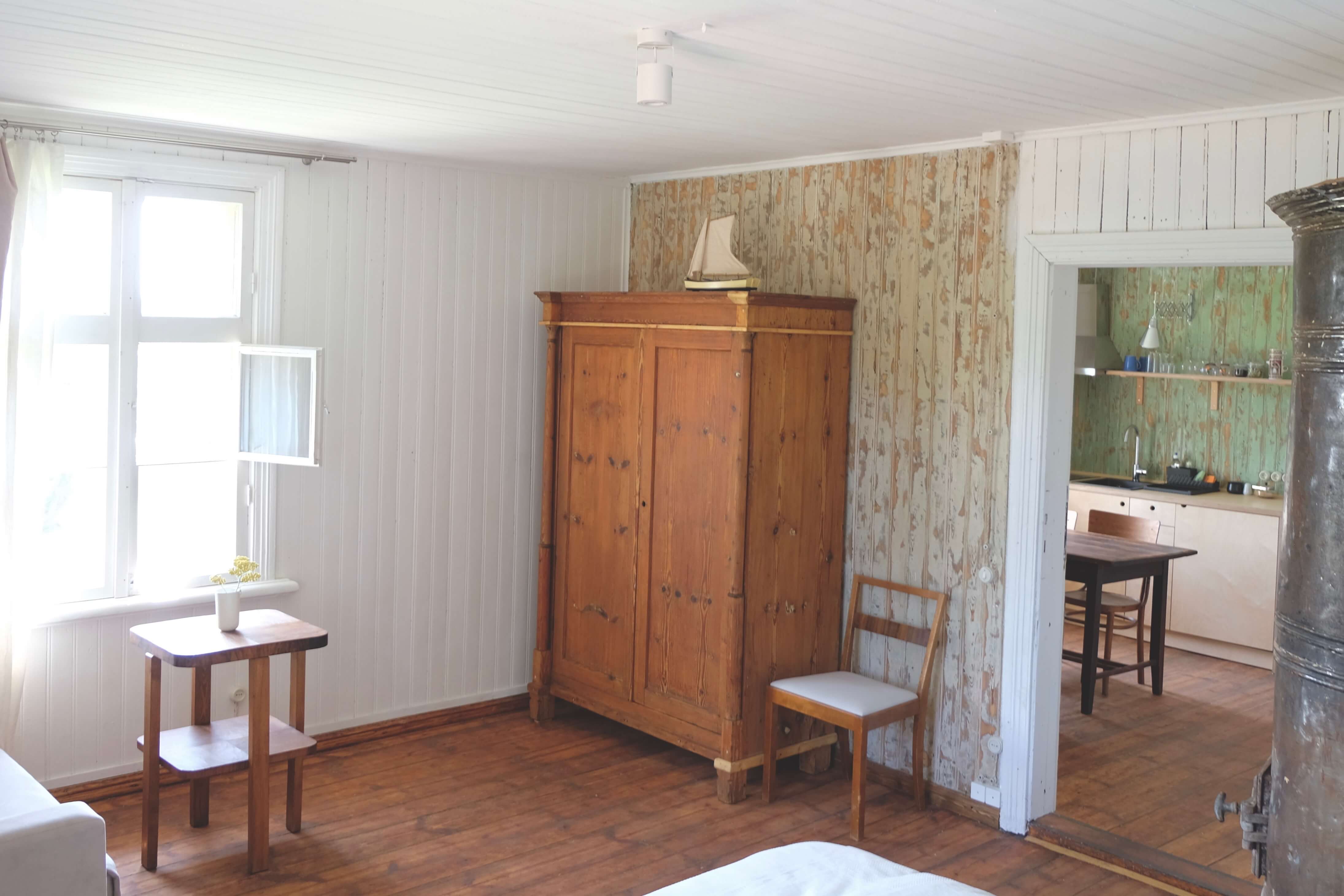 Klejotāja grāmatu plaukts aicina doties - uz citu kontinentu vai tepat uz Igauniju 800 metru attālumā no mājas. No šī pirmā stāva apartamenta var izkāpt pa logu un vakariņot starp papardēm pie privāta āra galdiņa. Ceļotājā ir plaša guļam-dzīvojamā istaba, omulīga virtuvīte ar malkas plīti un atpūtas zonu, vannas istaba.