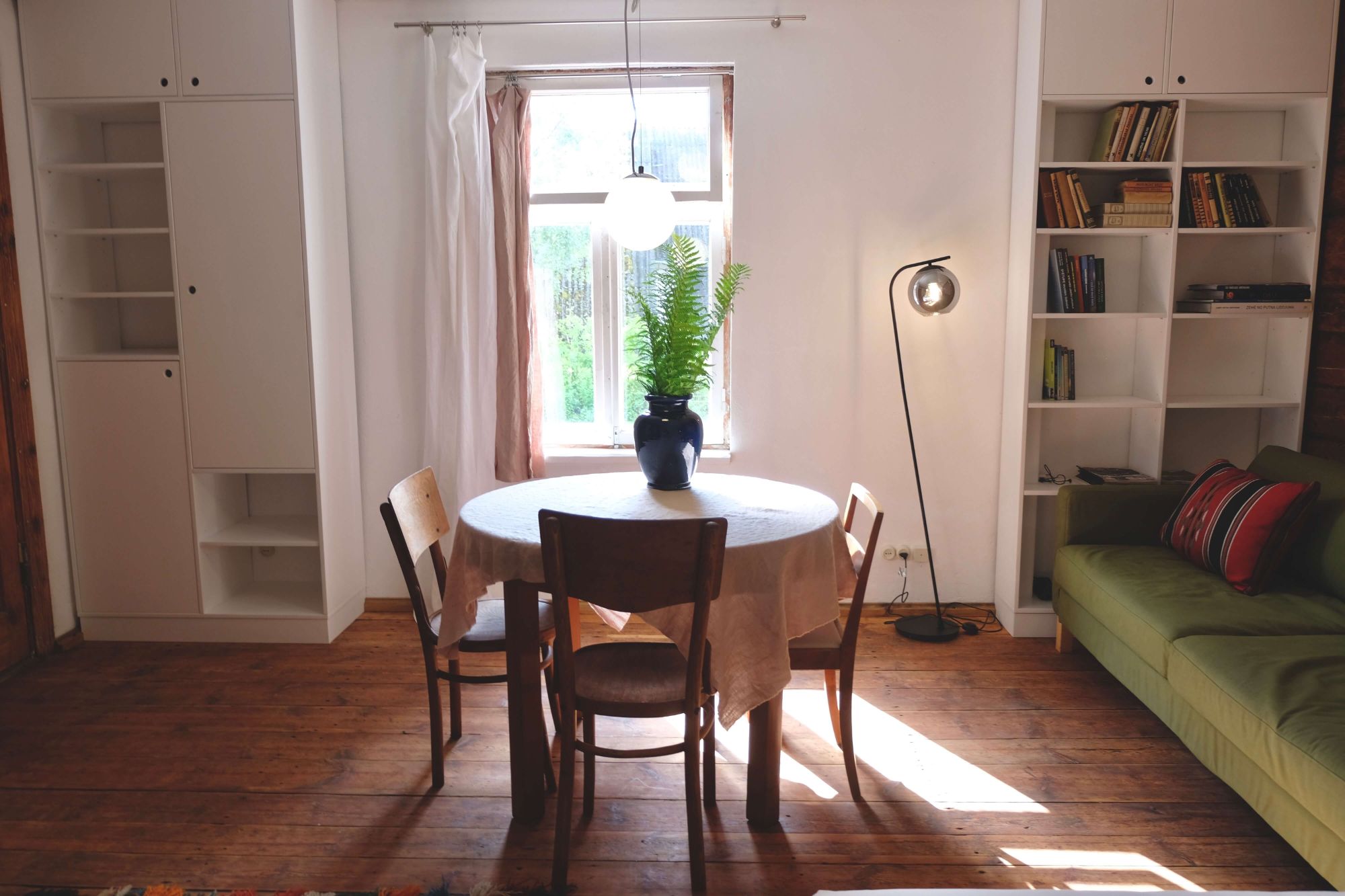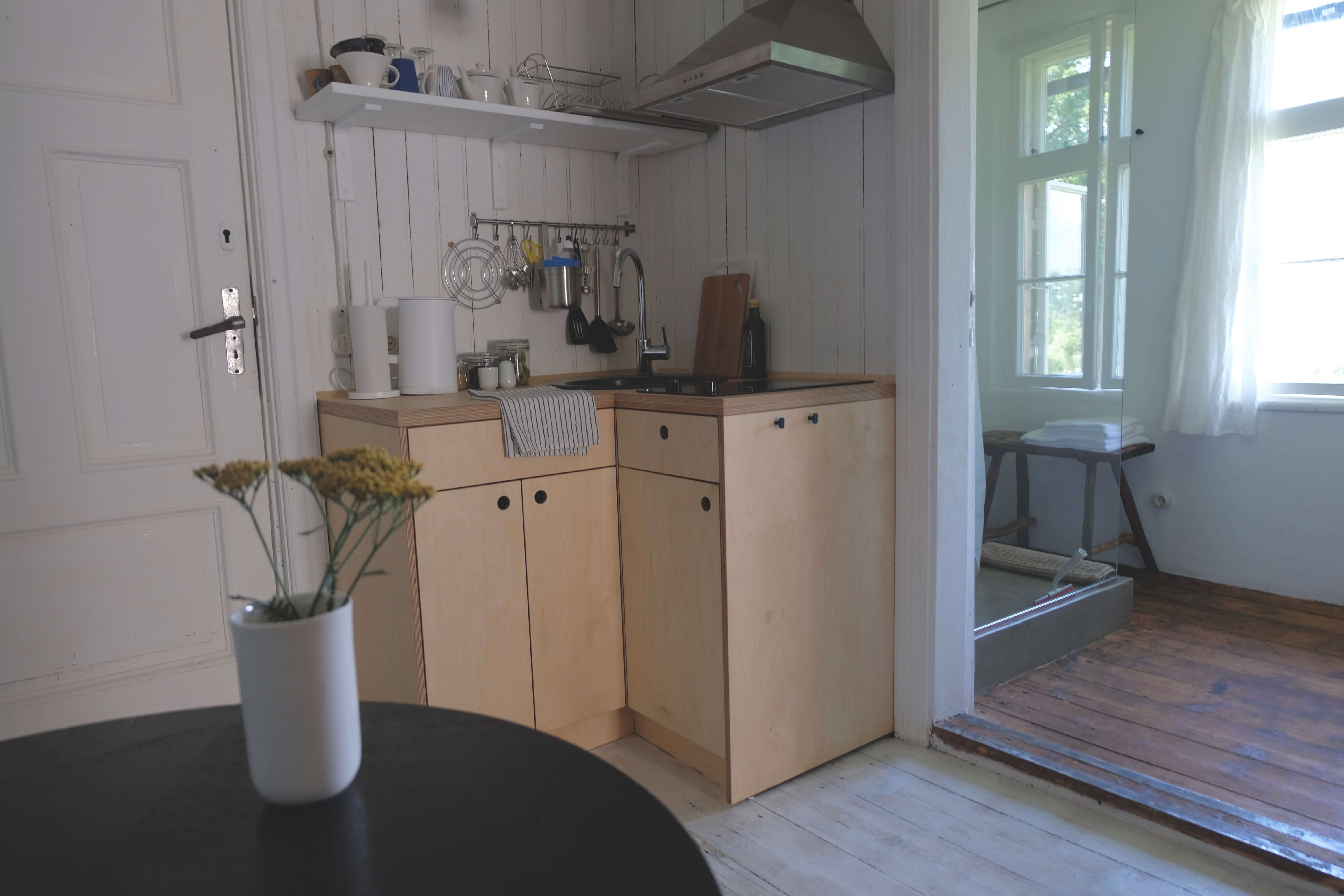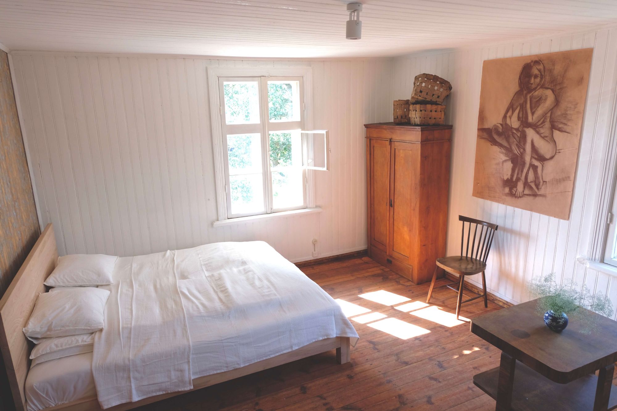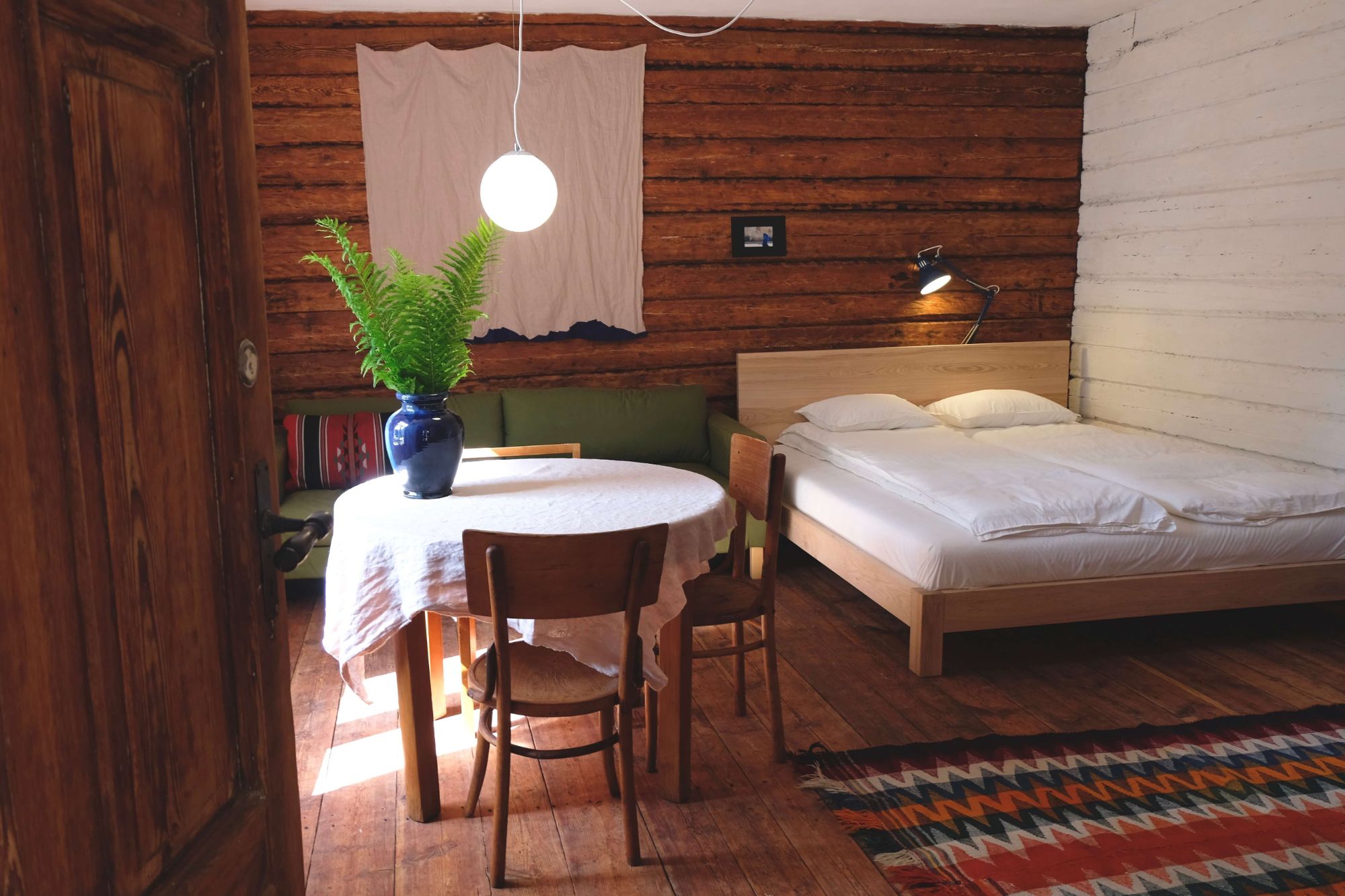 Klejotāja grāmatu plaukts aicina doties - uz citu kontinentu vai tepat uz Igauniju 800 metru attālumā no mājas. No šī pirmā stāva apartamenta var izkāpt pa logu un vakariņot starp papardēm pie privāta āra galdiņa. Ceļotājā ir plaša guļam-dzīvojamā istaba, omulīga virtuvīte ar malkas plīti un atpūtas zonu, vannas istaba.
