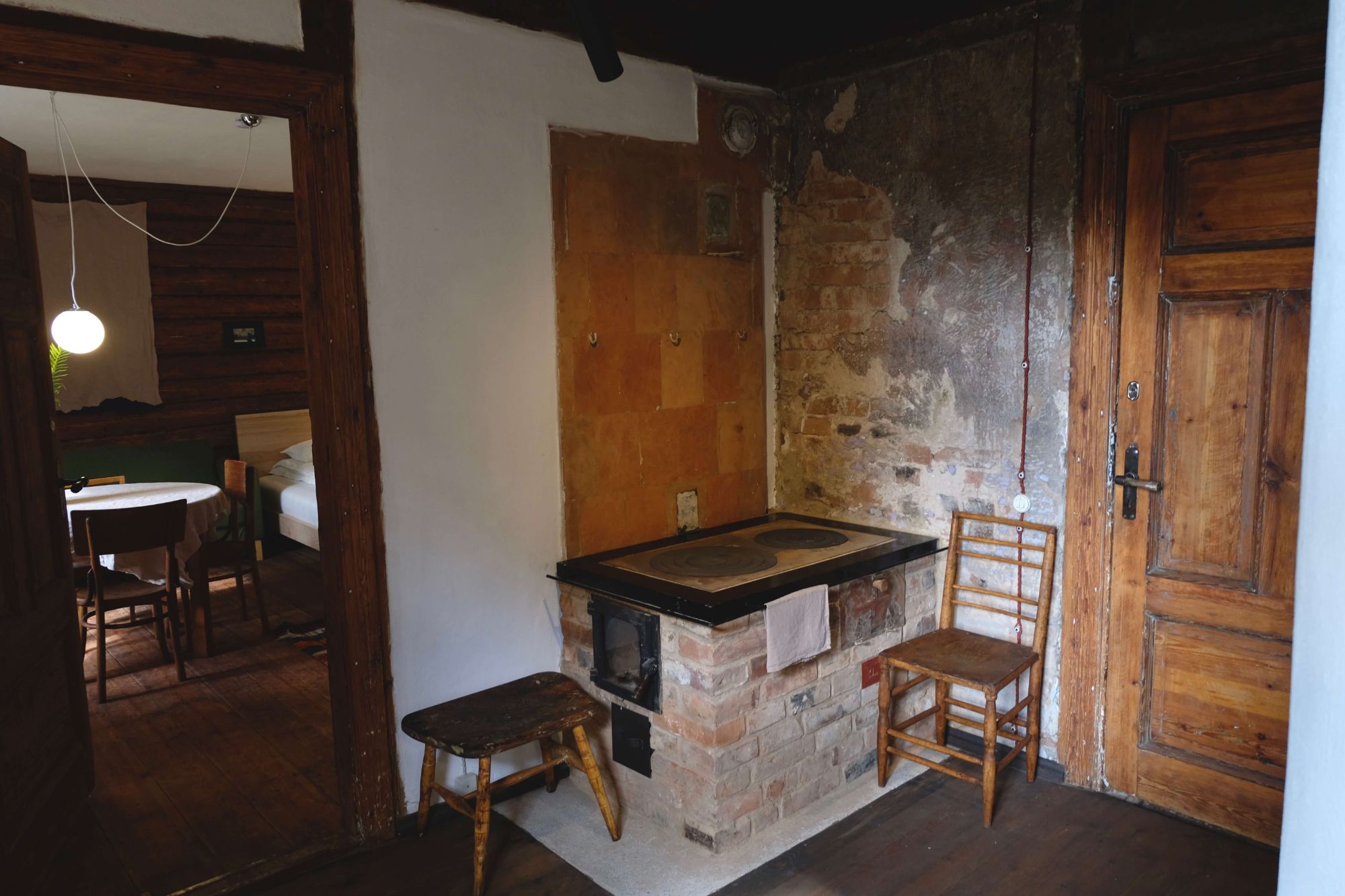 Mākslinieka apartamenta vakara gaisma, kas visu padara skaistāku. Iekurtu uguni virtuves malkas plītī var vērot, kaut atlaižoties virtuves dīvānā. Māksliniekā ir guļamistaba ar lielu divguļamo gultu un izvelkamu dīvānu, virtuve ar malkas plīti un dīvānu, vannasistaba.