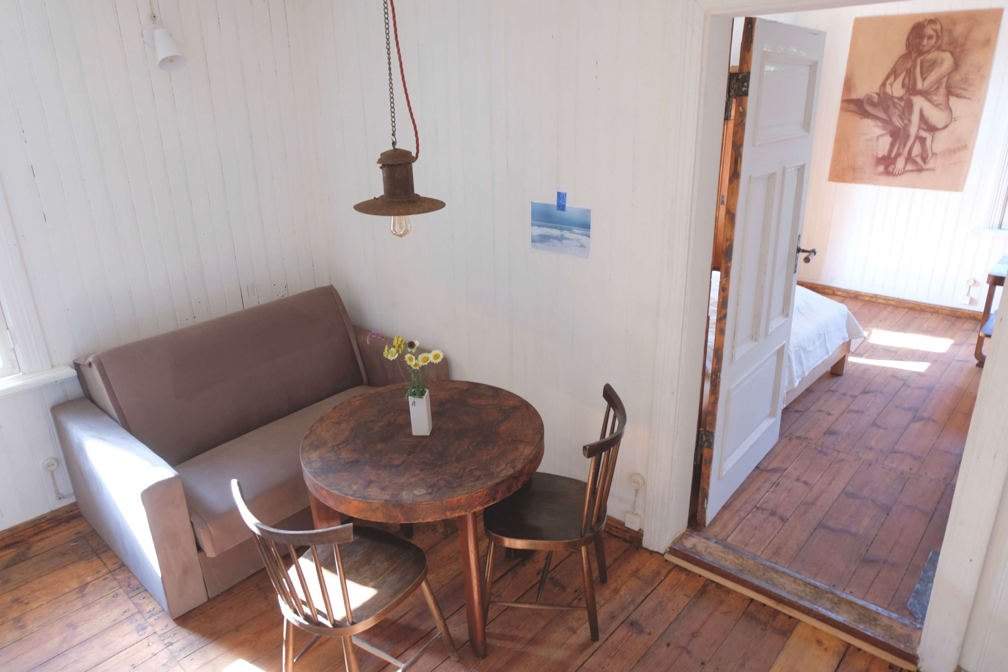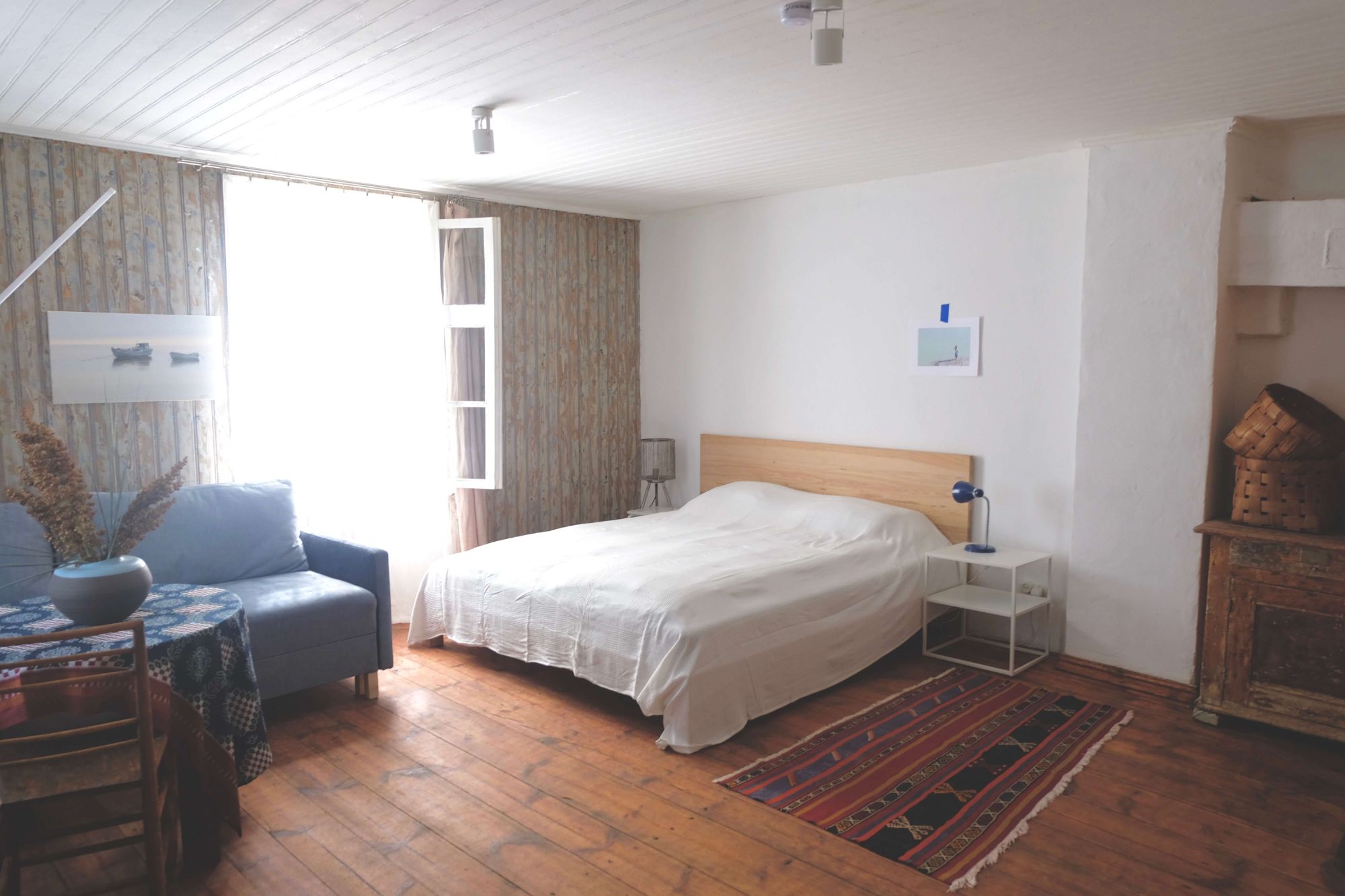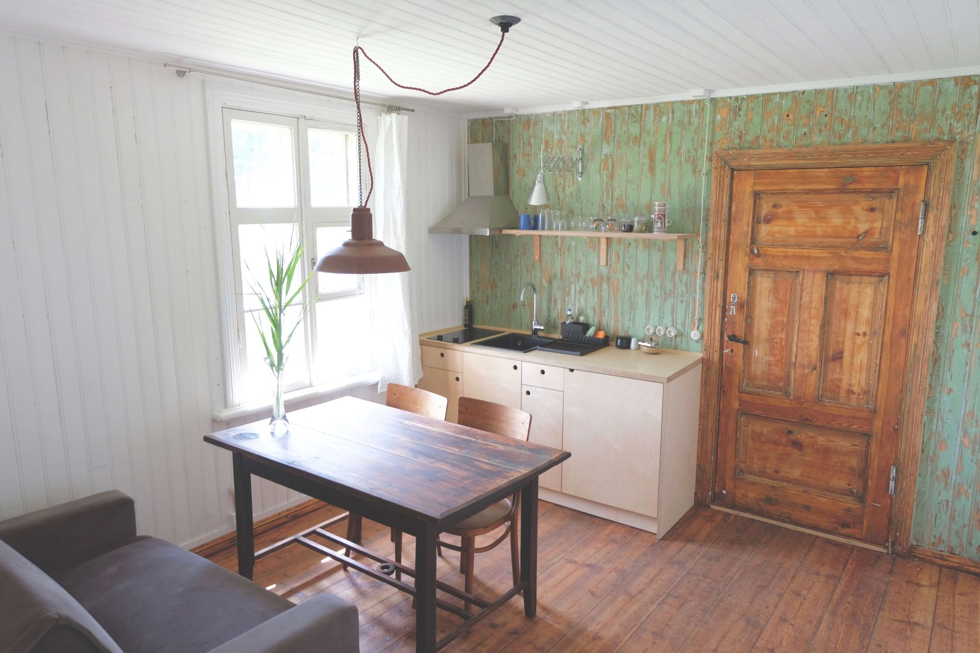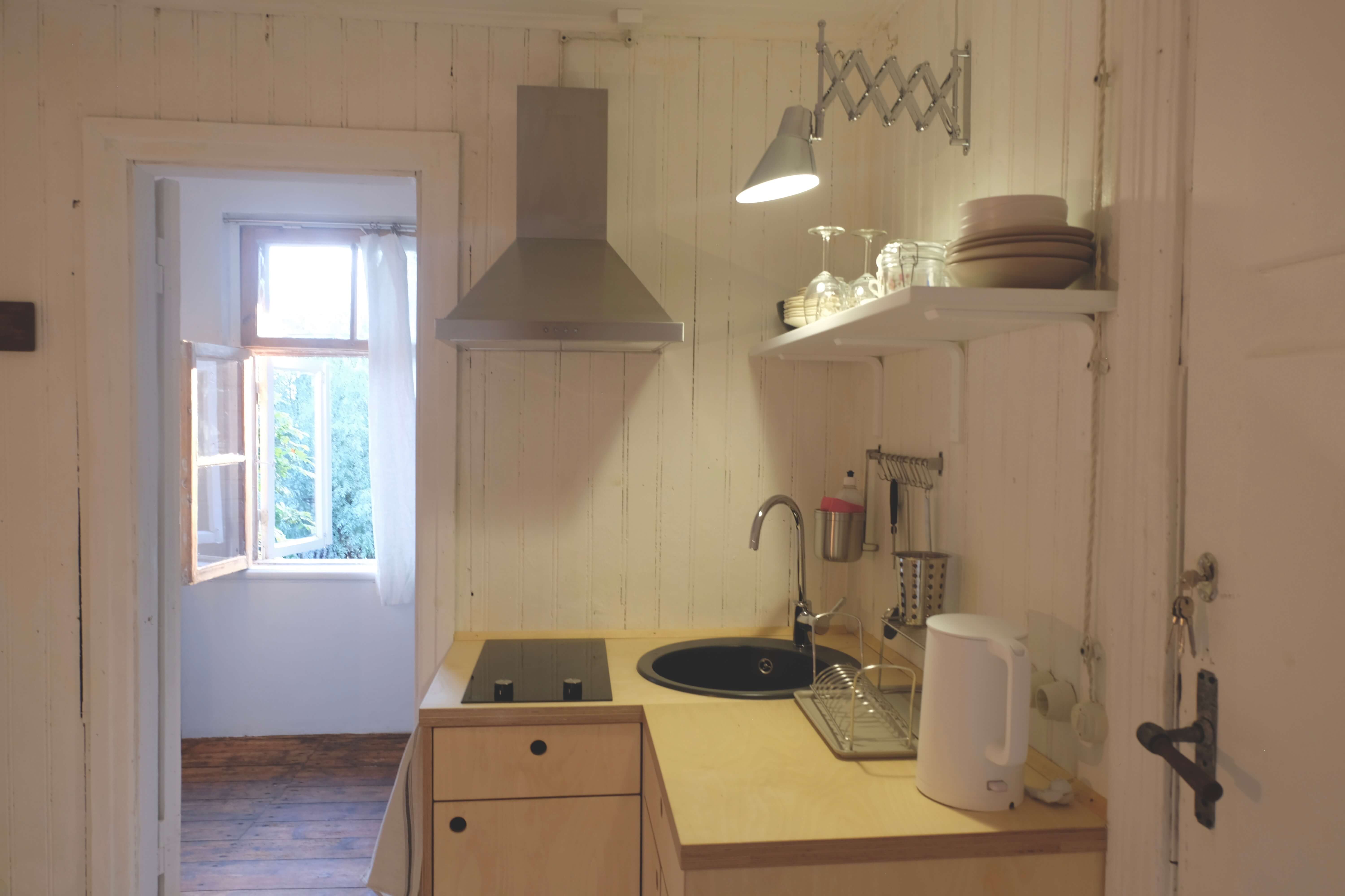 Klejotāja grāmatu plaukts aicina doties - uz citu kontinentu vai tepat uz Igauniju 800 metru attālumā no mājas. No šī pirmā stāva apartamenta var izkāpt pa logu un vakariņot starp papardēm pie privāta āra galdiņa. Ceļotājā ir plaša guļam-dzīvojamā istaba, omulīga virtuvīte ar malkas plīti un atpūtas zonu, vannas istaba.
